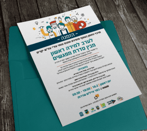 עיצוב הזמנות לאירועים בואו לעצב בסטודיו שלי הזמנות לאירועים מיוחדים לפי צרכי הארגון שלכם ובהתאמה אישית של תוכן וגרפיקה.