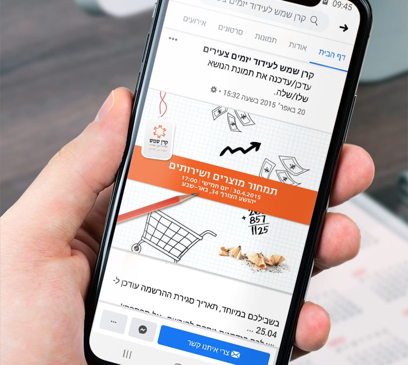 קרן שמש לעידוד יזמים צעירים קרן שמש הינו ארגון ללא מטרות רווח, פועל לעידוד וקידום יזמים צעירים בגילאי 20-35. עיצוב גלויה | עיצוב פרסומים שונים עיצובים נוספים למוסדות ולארגונים