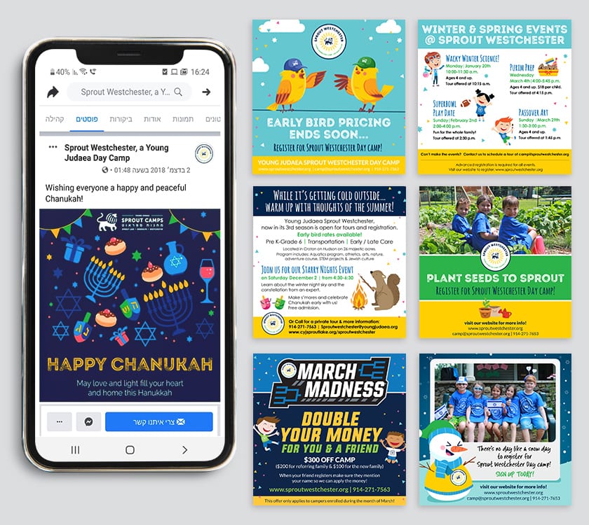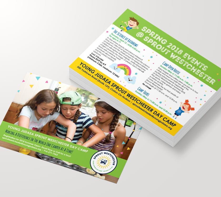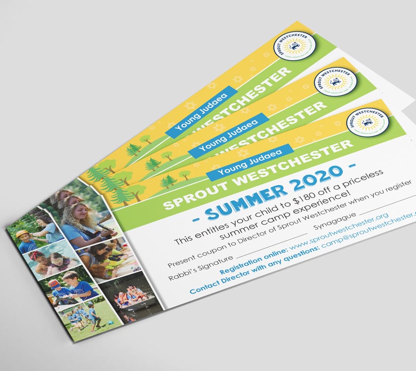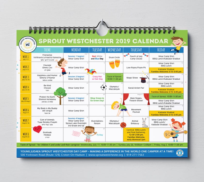 SPROUT CAMPS SPROUT CAMPS – יהודה הצעיר: מחנות היום של מחנה הקיץ Sprout Lake בניו יורק, לילדים בגילאי 3-6. בין המטרות העיקריות של המחנות הוא חיזוק הזיקה לזהות יהודית וקירוב מדינת ישראל. עיצוב פולדר |עיצוב פרסומים | עיצוב חוברות עיצוב קופונים | עיצוב גלויות עיצובים נוספים למוסדות ולארגונים